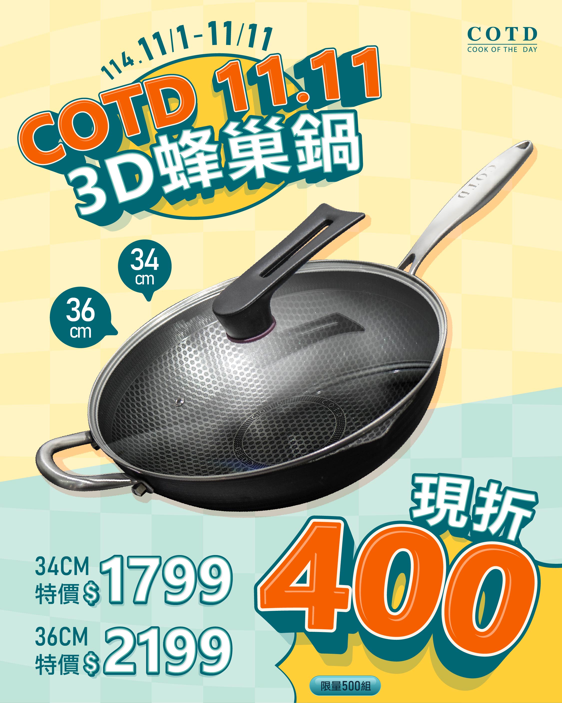 1111超狂折扣季!單鍋現折$400! 3D立體蜂巢鍋(附鍋蓋) 34公分炒鍋 一鍋抵六鍋 熱銷TOP1